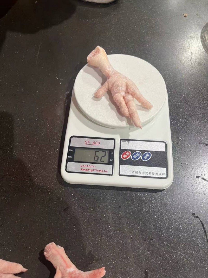 俄罗斯进口013鸡脚,单重35+,均重45+,断骨少,淤血少,有部分浅削钉,适合脱骨,虎皮。原厂原装证件齐全,品质优价格美丽。