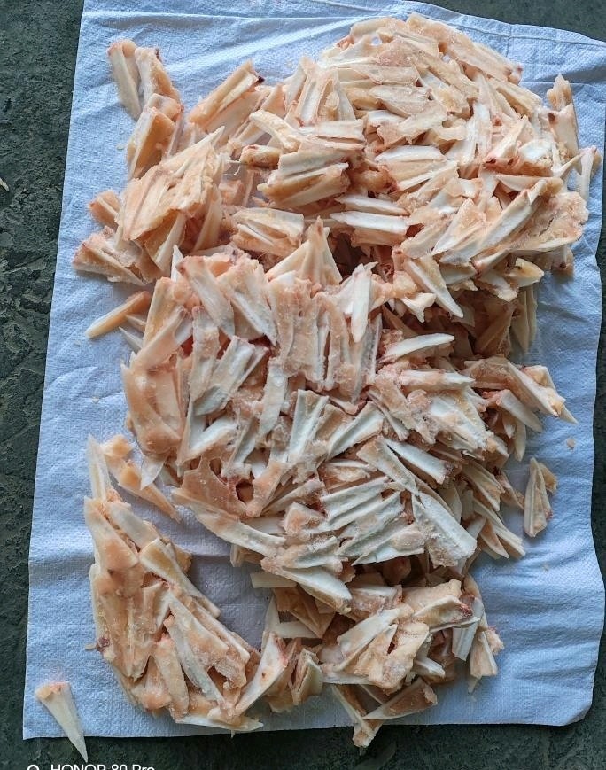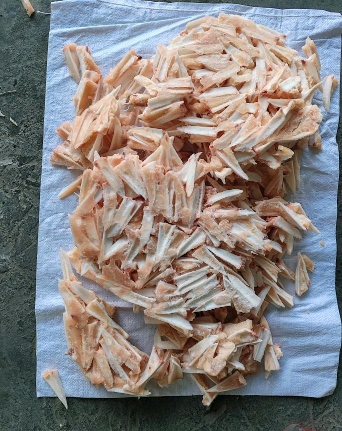 货品:带肉三角骨 规格:6*2 带肉率15%左右,带肉少,可以用来穿烧烤串,麻辣三角骨等。