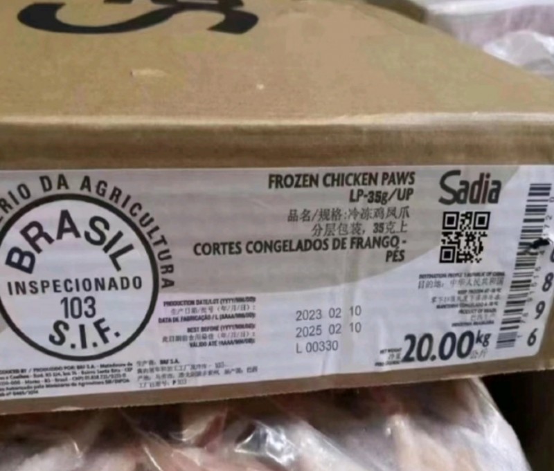 BRF SIF103厂;10个货柜的风爪已经开船,合计270吨。A级35g+,厂号:SIF103。价格,关后39700人民币/吨 十柜已售完,节前无现货到港。