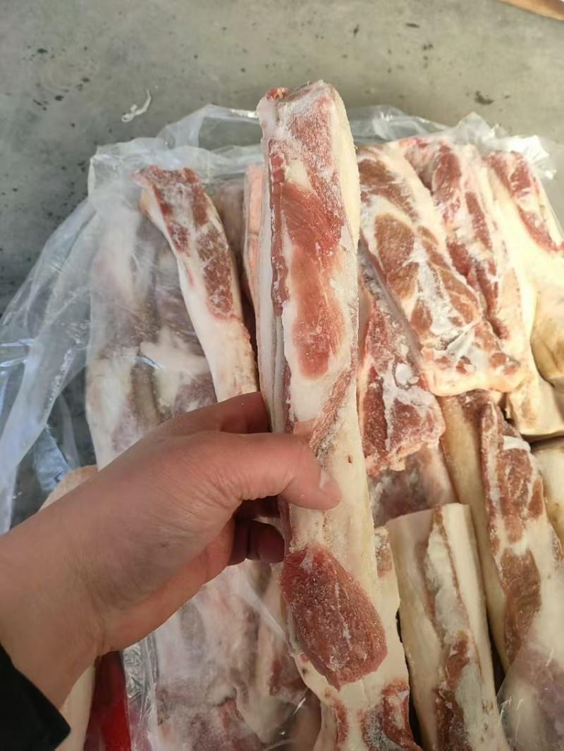 带皮五花肉条脊背切的