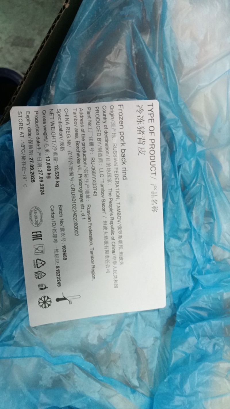 新到港,俄罗斯猪脊皮,薄油。可发样品