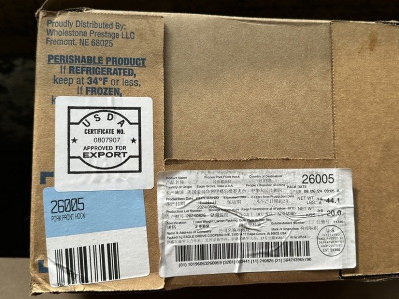 番禺永顺冷库出51340前肘(手圈)20kg定装,一箱52个左右,个头大均匀,24年8月-9月生产日期,价格美丽