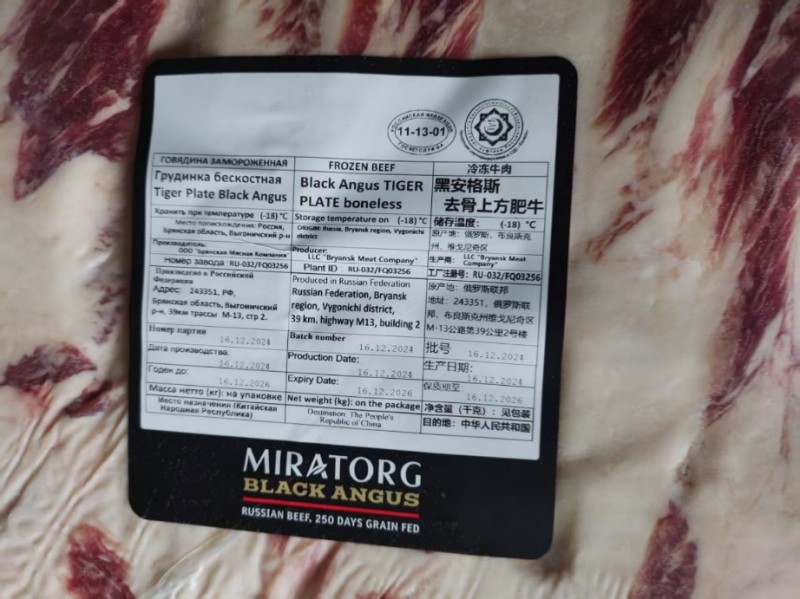 俄罗斯 32 厂安格斯谷饲 250 天牛产品,去骨上方肥牛