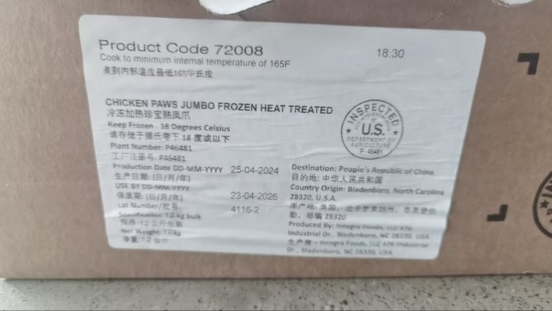 正品原柜现货,2024年生产日期,46481美国珍宝45+大凤爪;精选25+有5吨,35+有5吨,45+有12吨