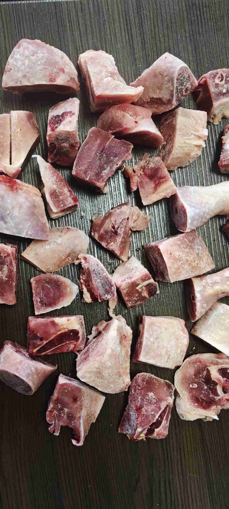 老公鸡鸡腿切块,肉质紧实劲道,全瘦肉,高压锅炖25分钟左右,大盘鸡食材