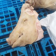 烧毛收拾干净的无耳母猪头,可以直接下锅,纯干货,加微信:手机号前加a
