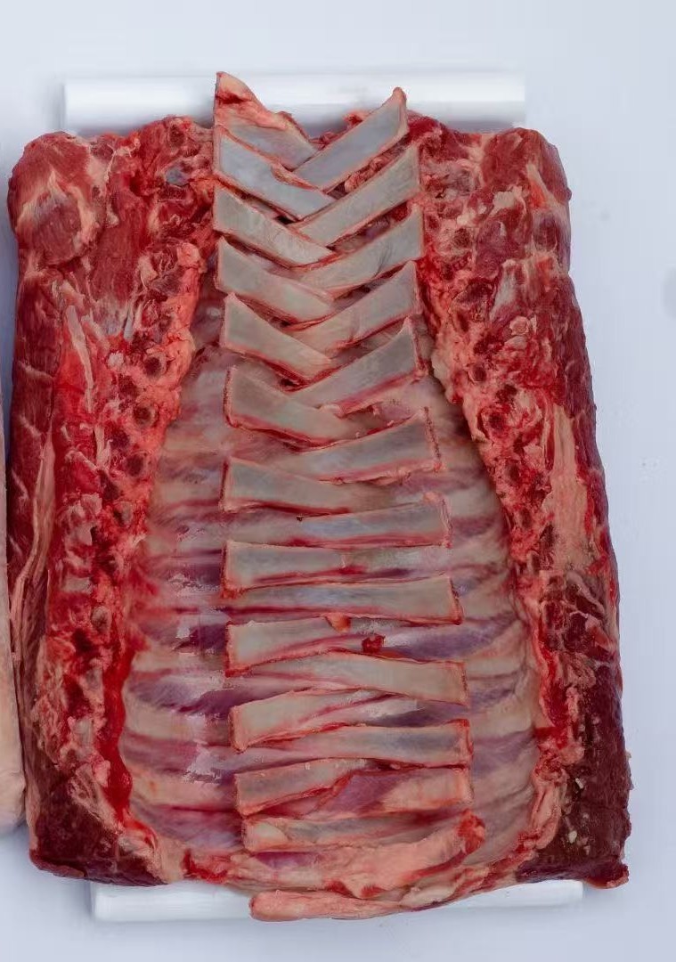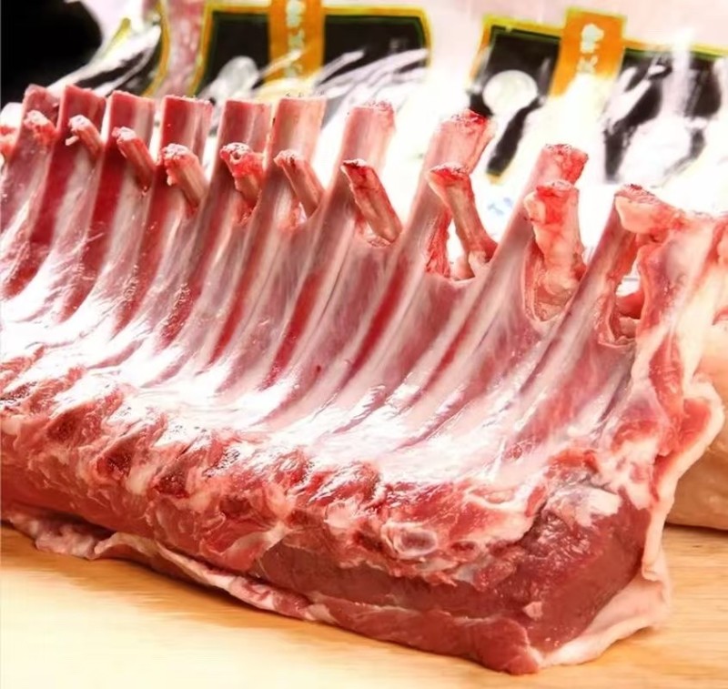 大羊十二肋法排,口感比羔羊稍差点。不腌制也说得过去。不是那种老羊排。