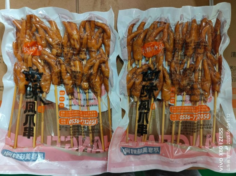 卤味凤爪串,60*100支,可定制。口味丰富。老少皆宜。