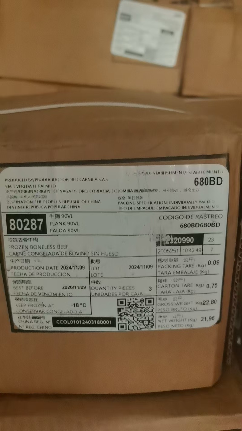 哥伦比亚680公牛牛腩 90比例 南京现货 24年11月日期 量大价优