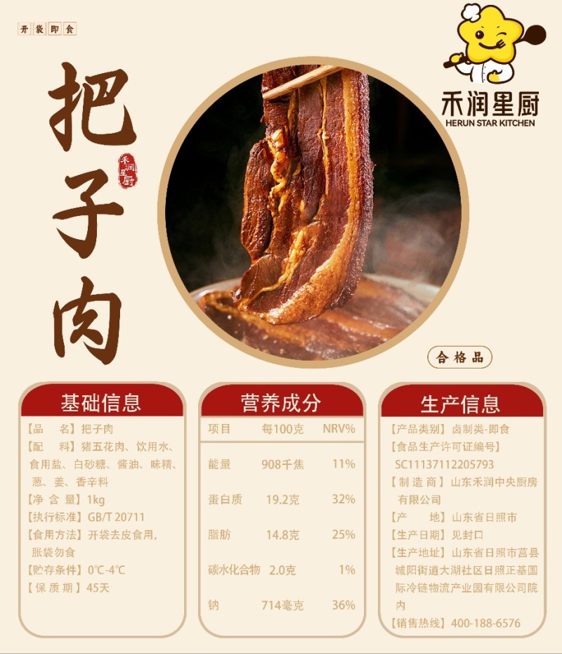 禾润央厨出品-把子肉,精选带皮五花肉整切,卤煮全熟,剔除碎肉小块,精选100克每片,10片每包,10包每箱,净重10千克每箱。全熟,物美价廉,老板大佬速来喝茶158-0633-0521王经理