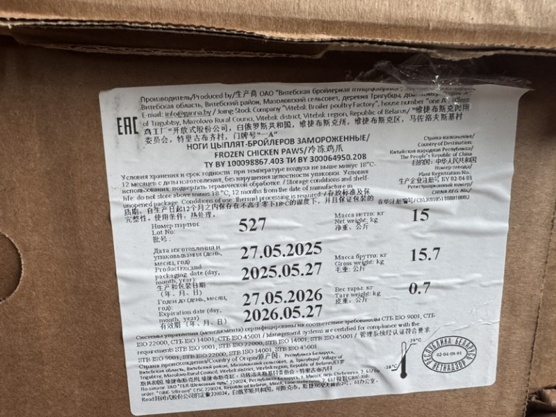 白俄罗斯020401鸡爪30+一件货410个