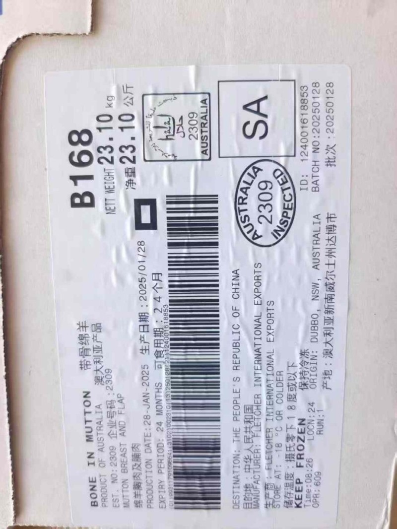 2309大羊排,整柜新日期25.11月,货号B168的542件,10796公斤,货号0173的802件,17215公斤能用来聊