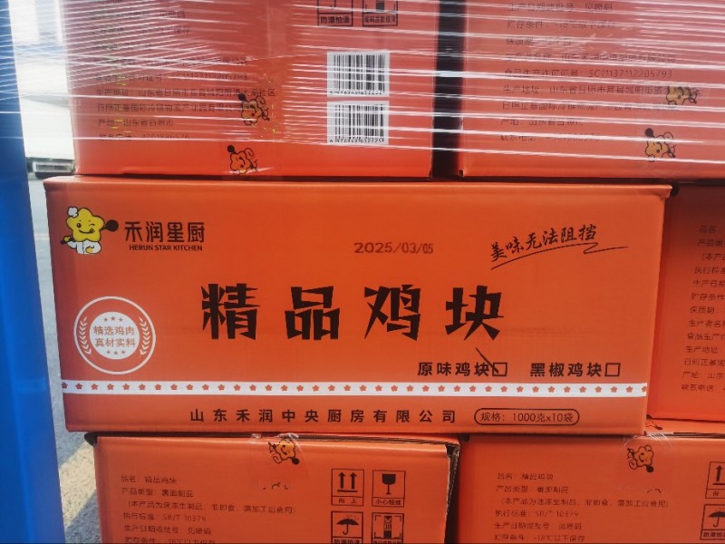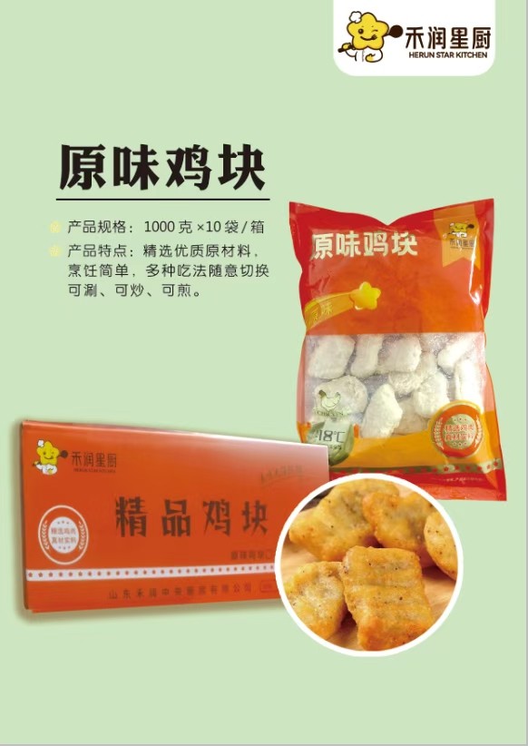 工厂自营,质优价美,2025年当月新日期。 产品名称:精品鸡块,口味:原味、黑椒。规格:1000克每包,10包每箱。支持定制其他规格。 禾润央厨158-0633-0521王经理