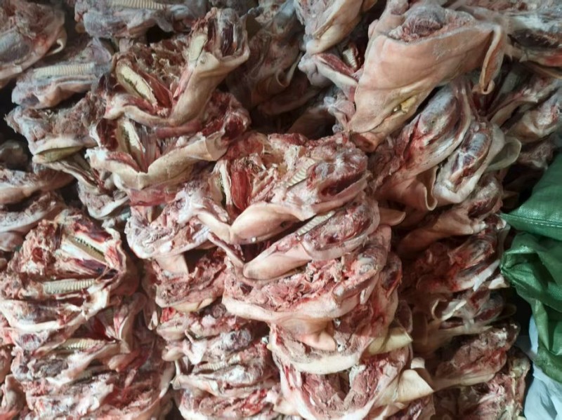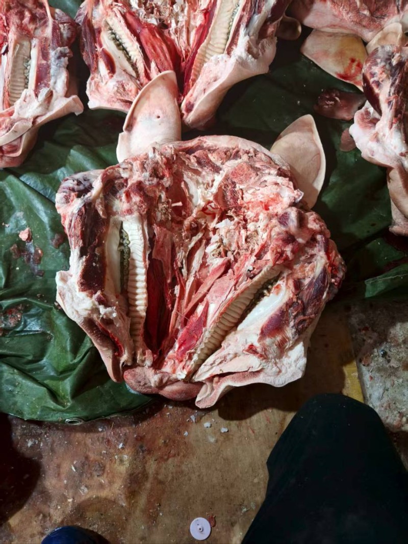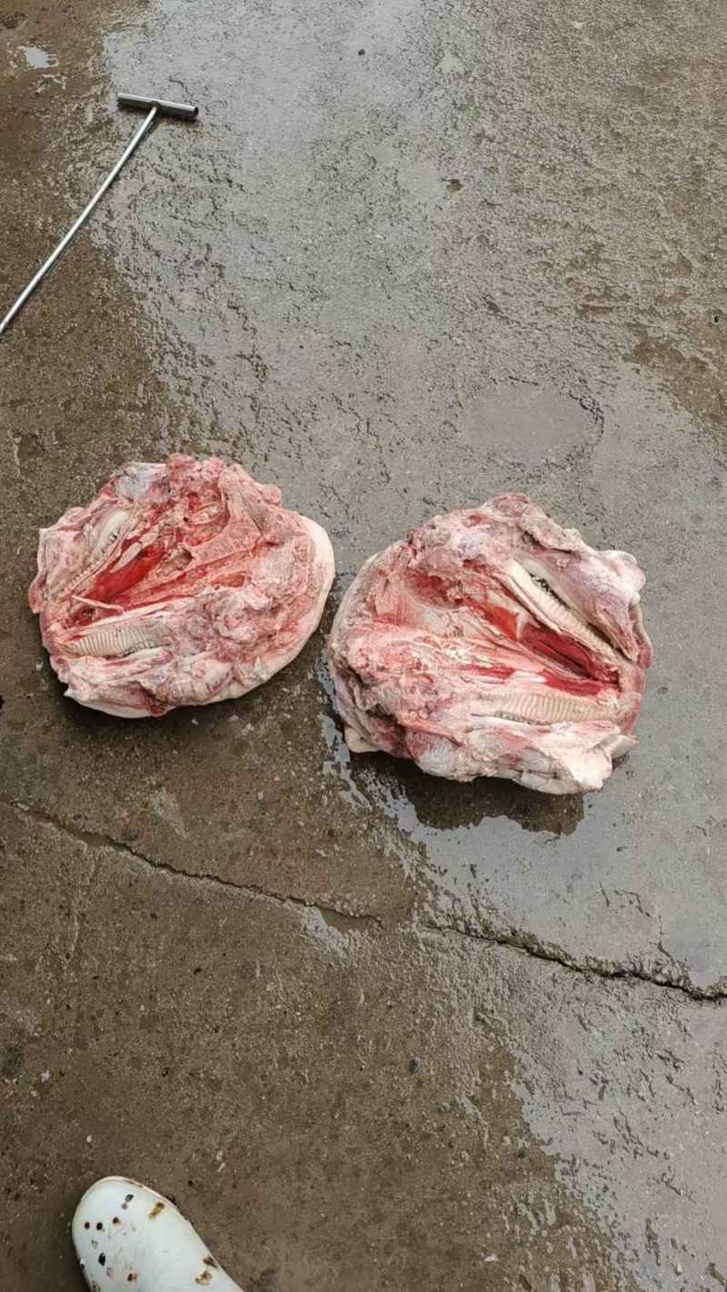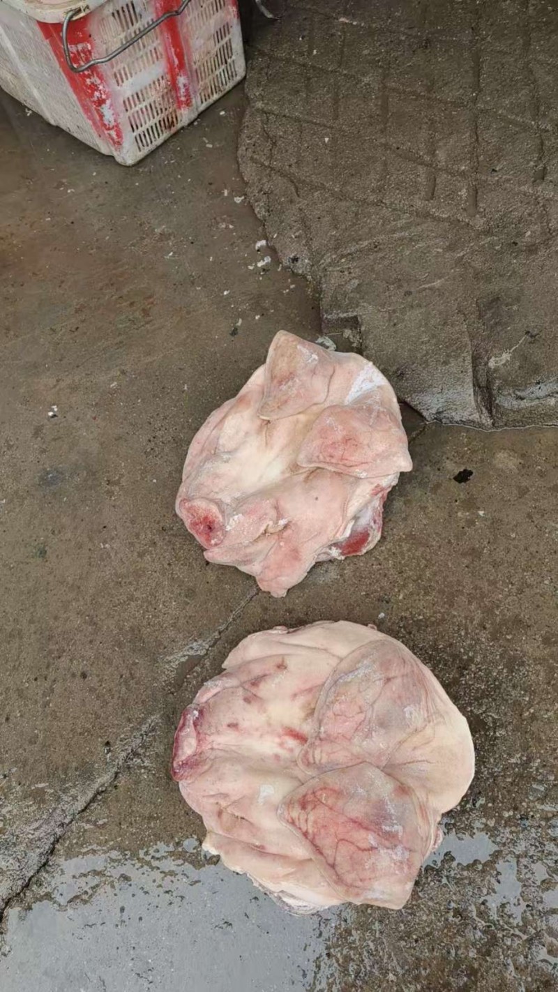 最近生产的新货,国产肥猪头劈半带耳去毛干净,稍微有点偏肥,单个六公斤到七公斤,