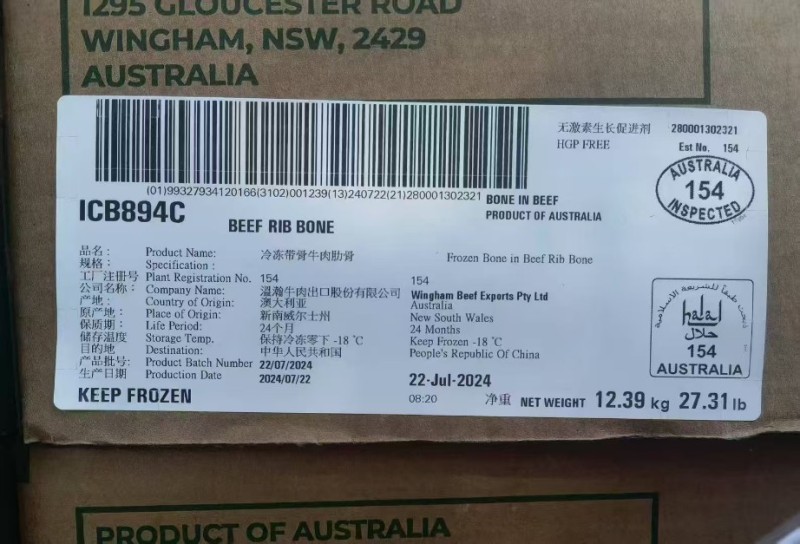 154/558 和牛肋骨(单根骨) 上海整柜 24年底日期