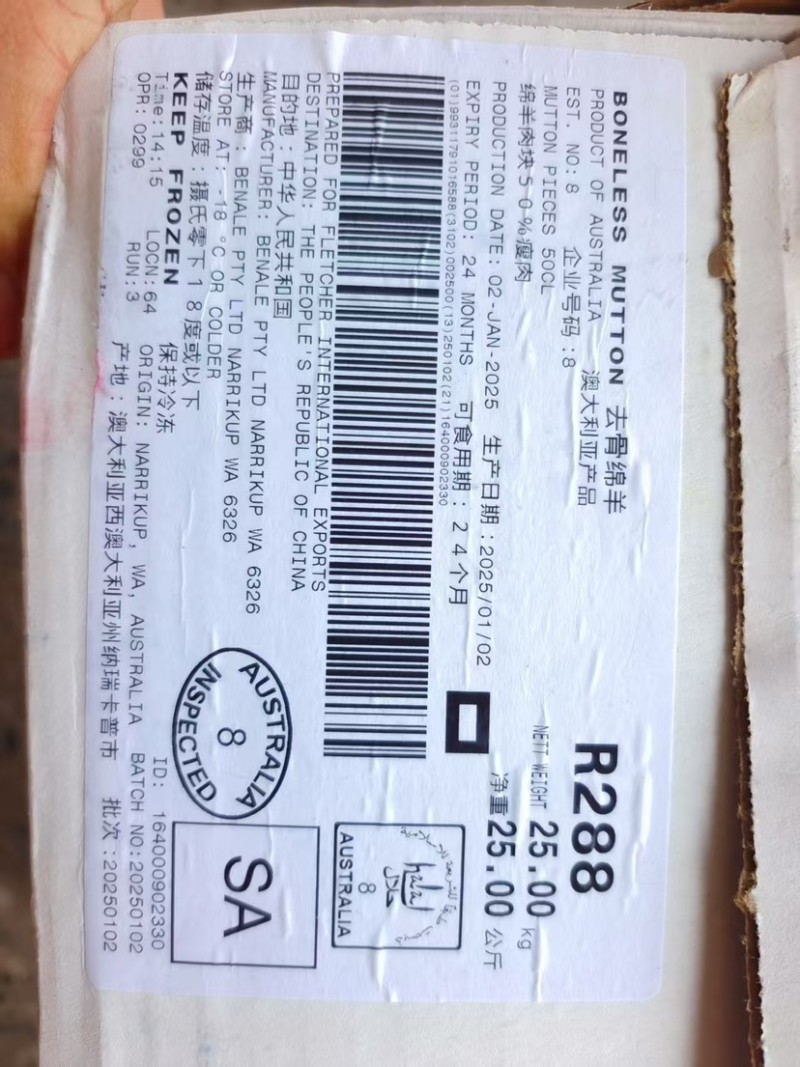 澳大利亚8厂大羊碎肉50比例