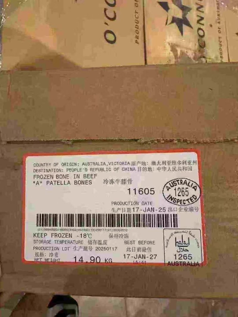 澳大利亚1265厂牛窝骨,25年2-4月 单个重量1.2-1.4斤,天津现货出售