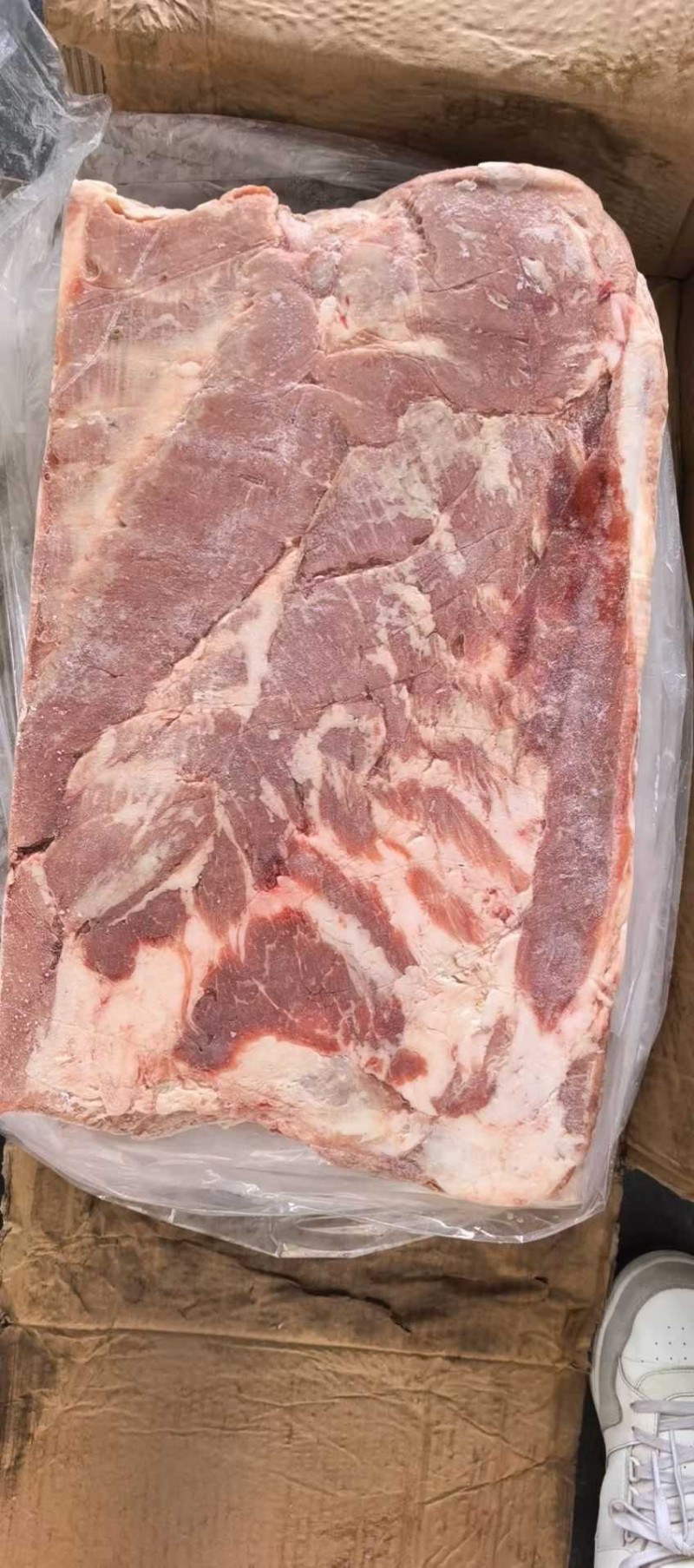 国产肥猪带皮五花一车货,一二级混装,25公斤三到四片,今年6-7月最新货,价格很美丽,17+,临沂天翔提货。