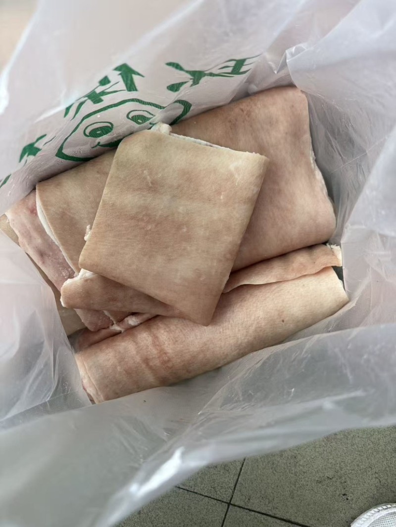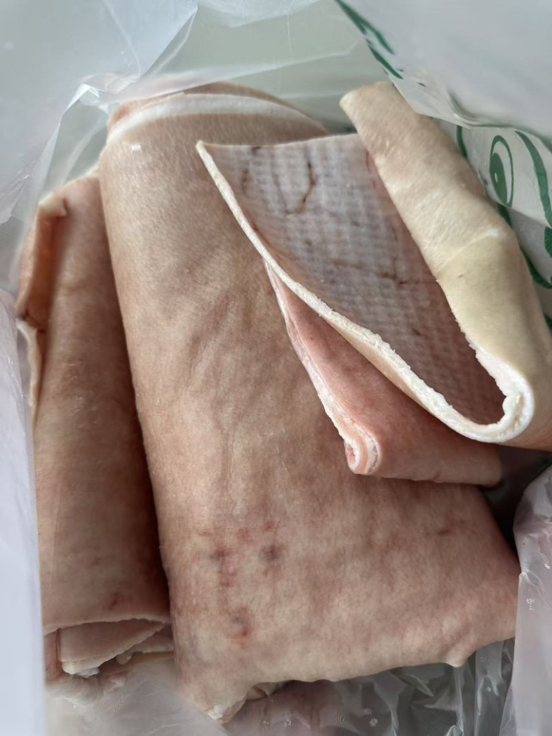 猪五花皮、非常干净无印张、大张无碎皮、碎皮单独分开了、进口猪五花做的去皮