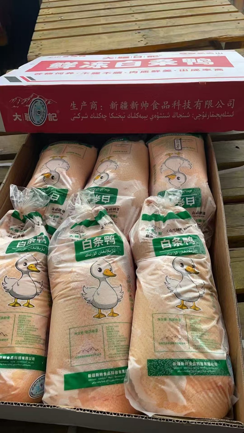 精品新疆盐水大白条鸭,养殖了48天,全净膛,去掌去翅带头鸭,本品适合加工厂和卤味餐饮店,餐饮使用。