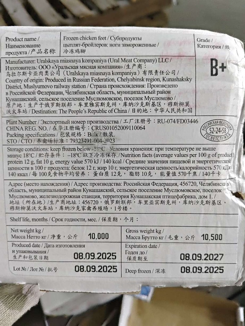 俄罗斯B+级鸡脚