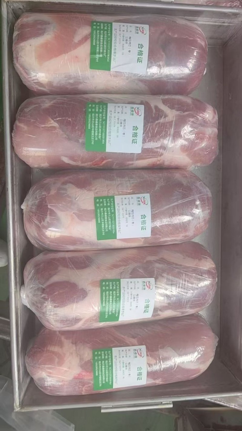规格:10kg/件。 带脂梅花肉通常指猪上肩肉(梅花肉),是猪肩胛骨上的肉,因肌间脂肪分布形成类似梅花的大理石纹路而得名。 这个部位瘦肉比例高,夹杂着白色筋条和少量脂肪,肉质鲜嫩,久煮不柴,脂肪能增加香气和油润感。