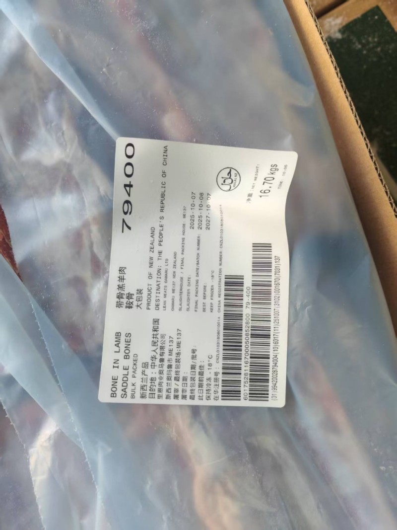 新西兰137羔羊脊骨,25.10月日期,天津7吨,一手货源可带票,长期供应