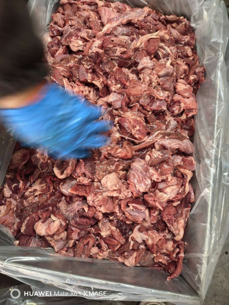 牛头碎肉瘦肉比例90%。有少量牛毛