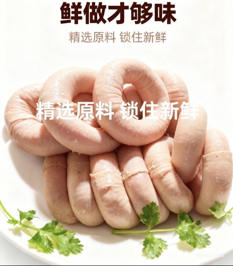 精品圈圈肠,80个/件 左右 100个/件 左右 规格可以订制,预煮时间长,更适合熟食加工厂、熟食店、餐饮渠道!