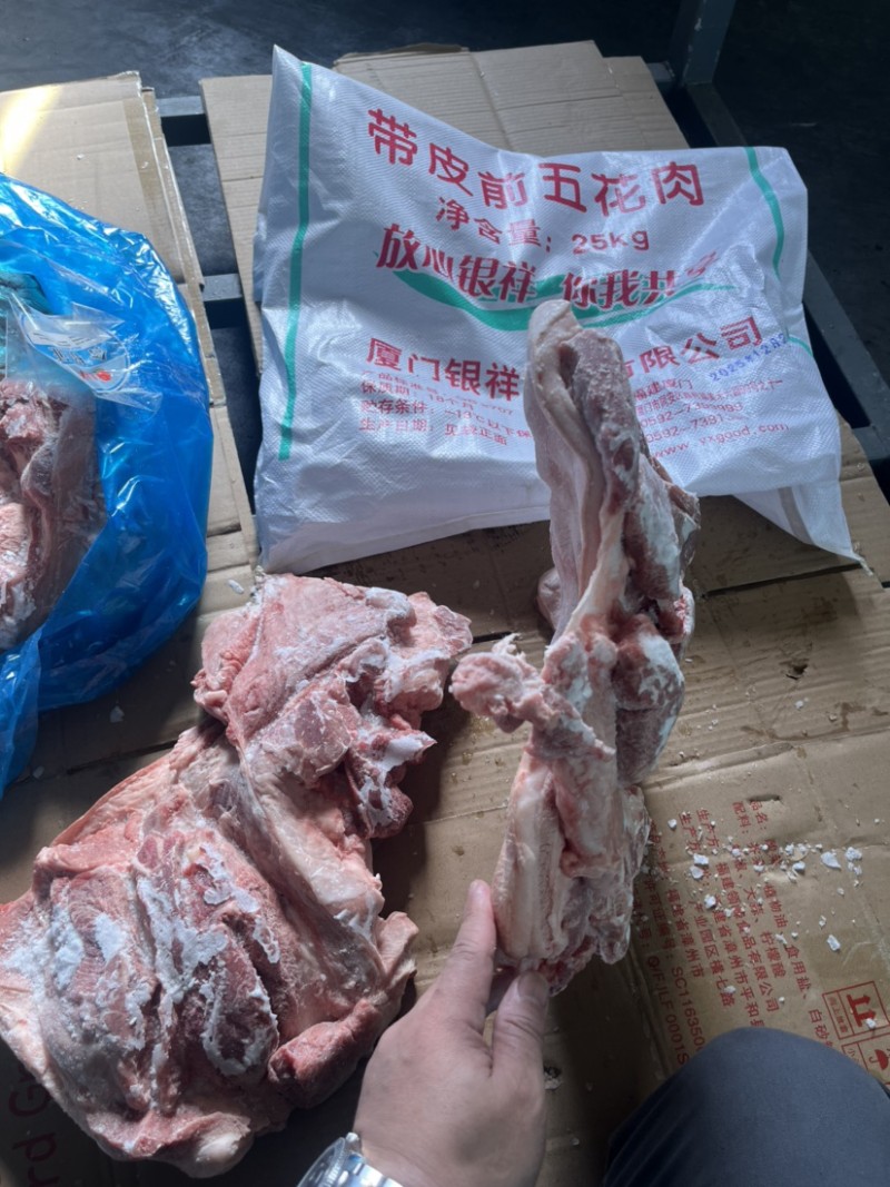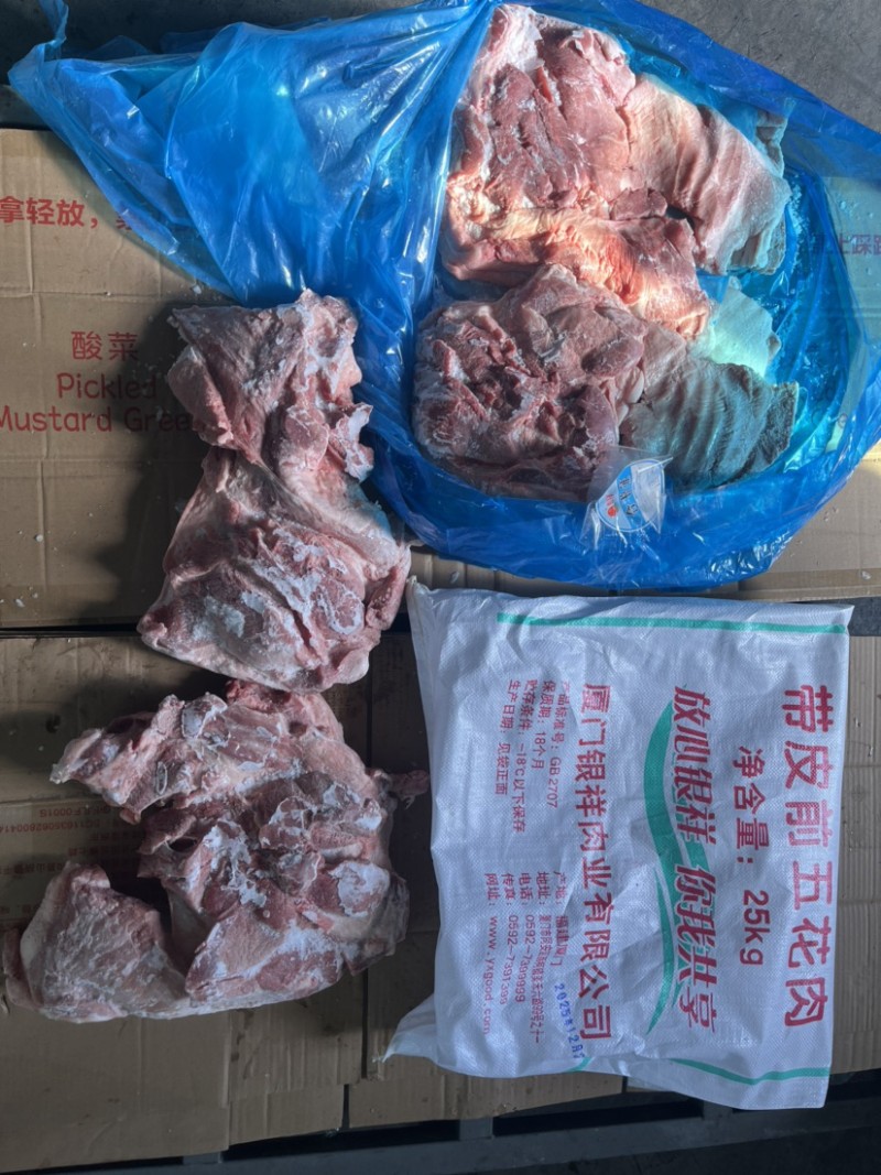 冻带皮前五花(前上肉) 瘦肉型标猪热鲜分割 肥瘦比例(5:5),25公斤6片