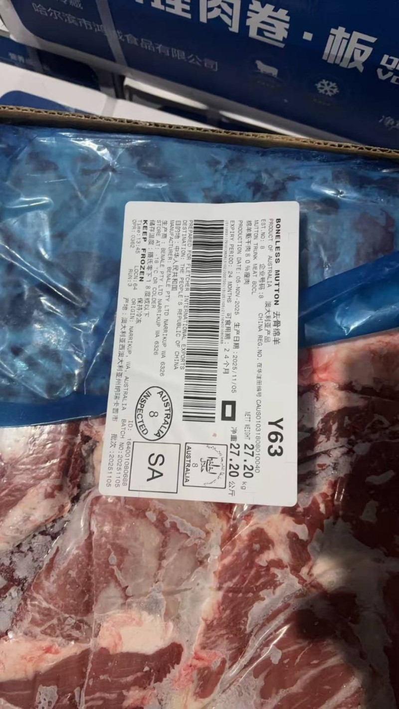 澳洲8厂大羊躯干肉 天津最新日期 20吨 能用来聊 一手货源可带票