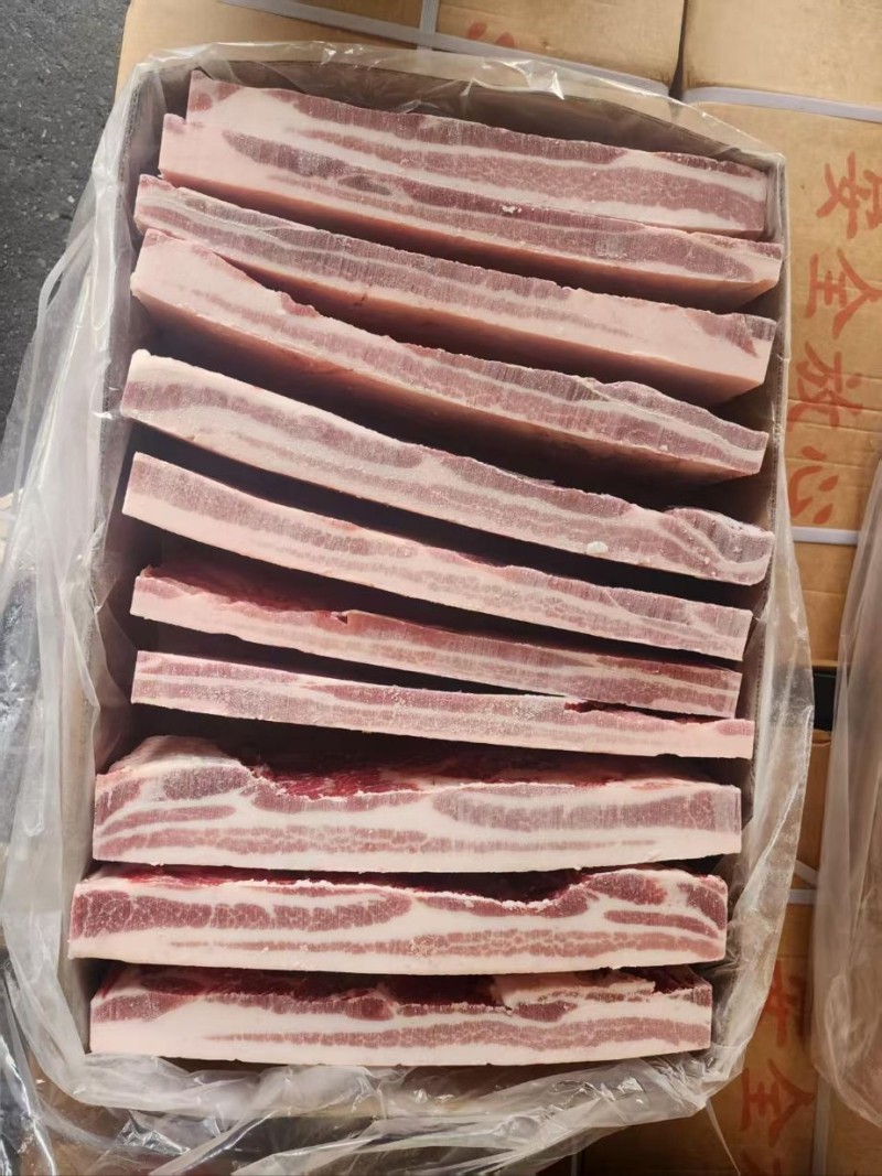 规格:20kg/件。 猪五花肉位于猪的腹部,具体在肋骨下方至后腿前侧的区域,以肥瘦相间、层次分明为特征。