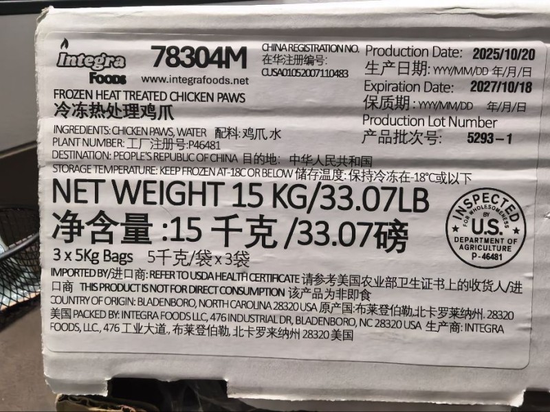 P46481蒸汽美国熟凤爪,平均35+克重,一手货源,供应稳定,每月10-20柜