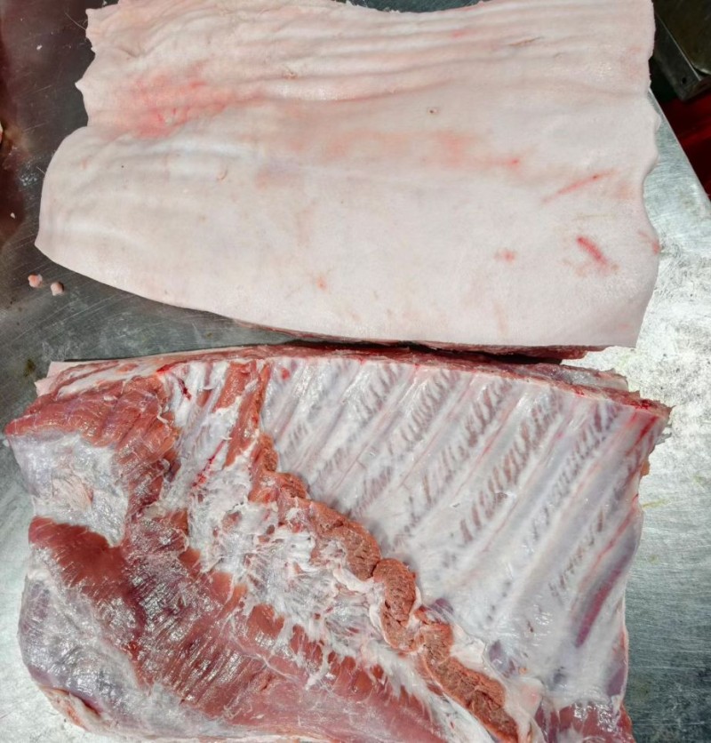 精品肥猪带皮带肋中方 产品规格型号: 25 公斤 7/10 片 25 公斤 11/13 片 临沂提货