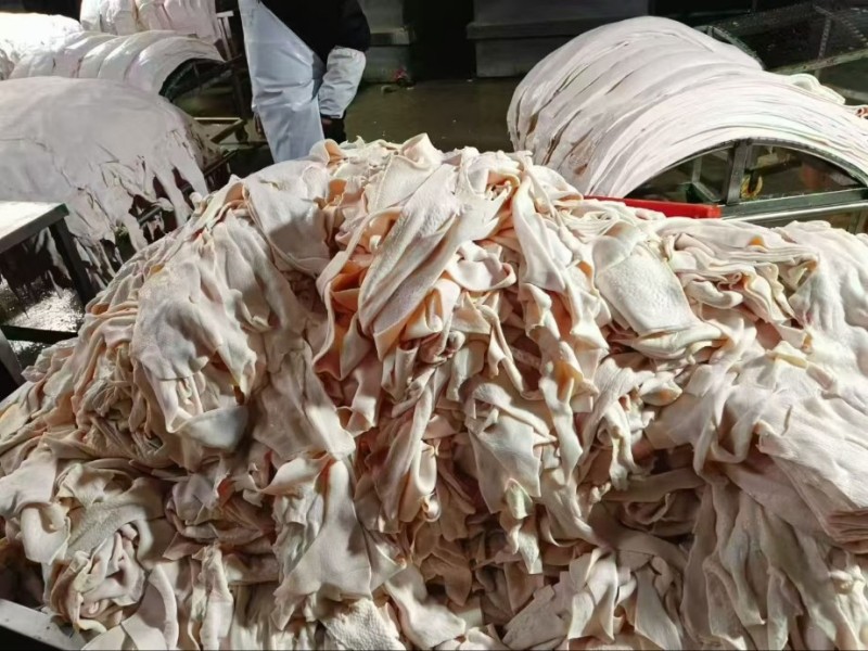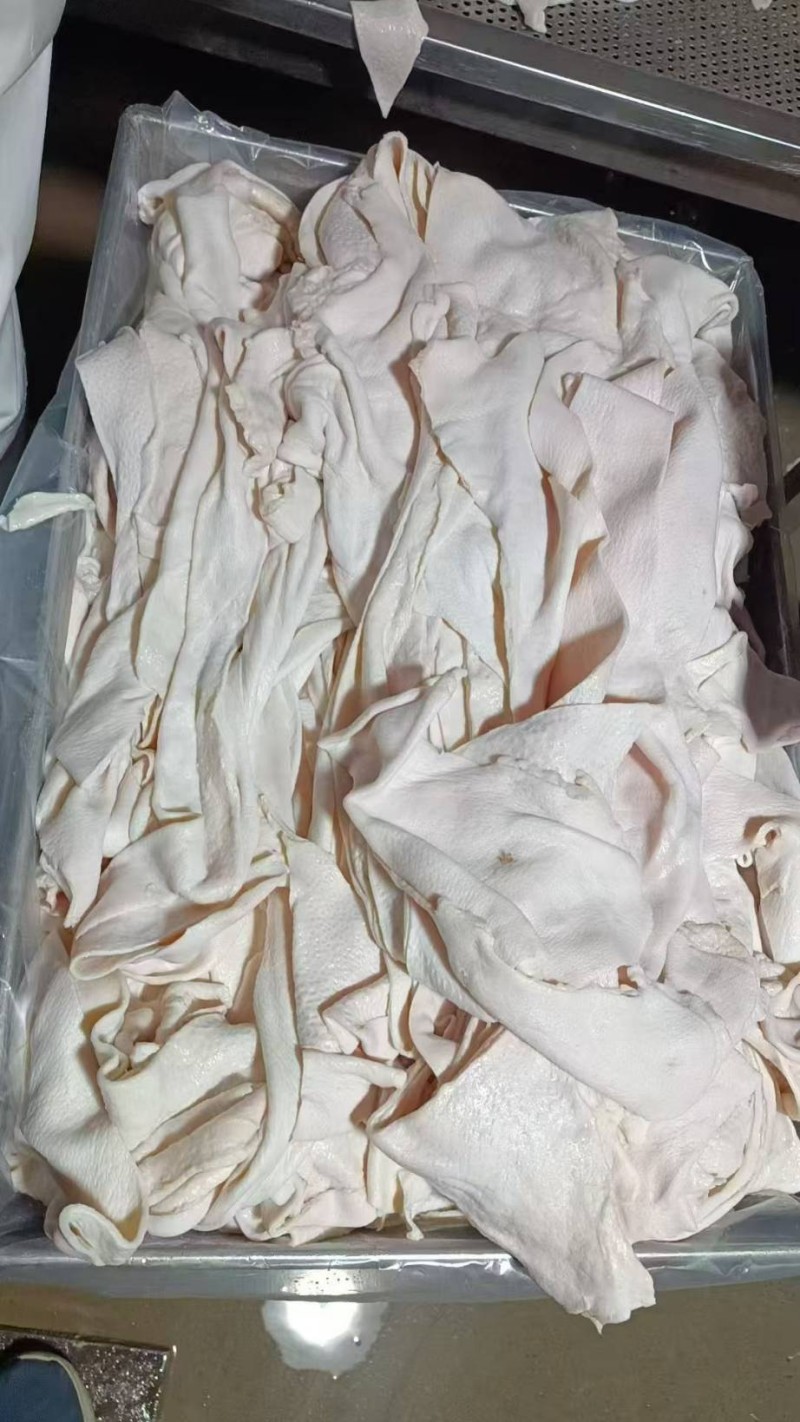 食用级碎皮,干净无毛无油无章,清洗一下,可以直接下锅,适用于做猪皮冻,泡椒猪皮,藤椒猪皮,熟食厂,饭店等用途广泛,需要联系