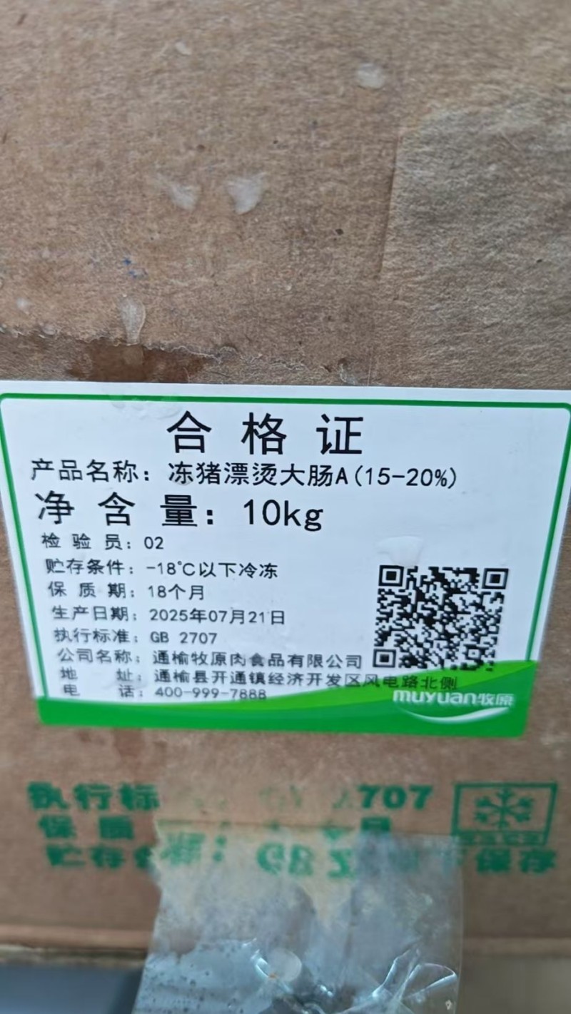 牧原大肠,去油80-85% 解冻19.5斤 2025年7-8月份生产 可整可拆 可试样
