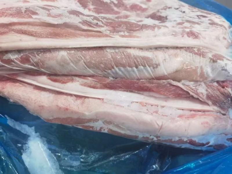 母猪带皮五花 ,25年4月份,保质期18个月 ,25公斤箱装3-4片,原始检疫