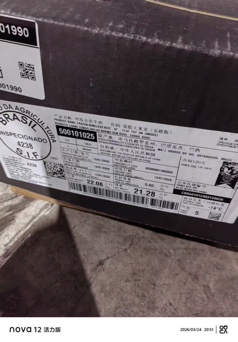 3月26日青岛到港靓货,巴西美利华4238工厂estancia92谷饲安格斯带脂大米龙,欢迎联系!