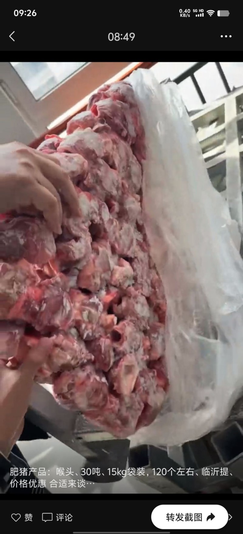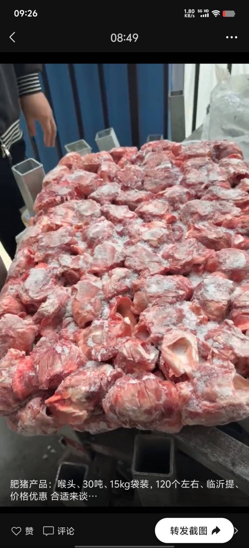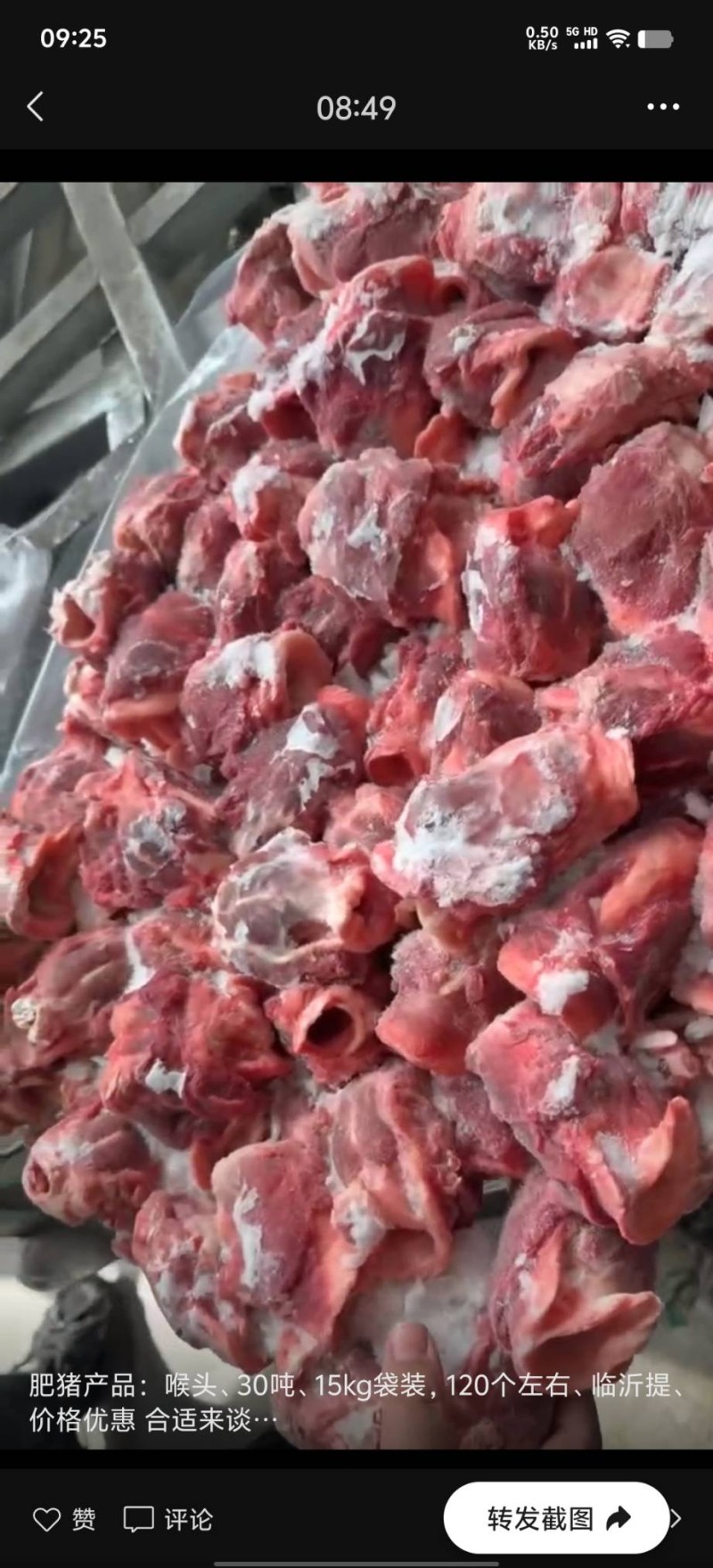 肥猪产品:喉头、30吨、15kg袋装,120个左右、临沂提
