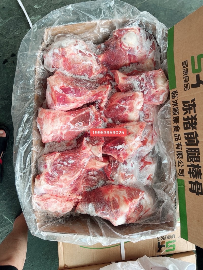 进口分割多肉前棒骨,带肉率45。十公斤一箱20个左右。本公司长期屠宰分割猪副产品,精肉系列:1234号精肉,两扒,前驳,腱子肉类。五花系列:前后上五花,带去皮中方,五花卷,三线卷等。各比例碎肉,带去皮槽头。油脂类:脊膘,肥膘,碎膘,板油,杂油。排骨类:肋排,去颈前排,寸排,龙骨,带肉腿骨,前后肘子,颈骨,尾骨,叉骨,扇骨,元宝骨等。半成品类以及副产:去骨七分熟猪头肉,猪精耳,猪脑花,预煮大肠大肠头,猪肚,猪鞭,猪肝,猪心,猪腰,猪舌,猪蹄,花肠,大排片,排骨粒,猪蹄块,肉丝肉片肉丁等产品诚信经商,义利相济。电话19953959025