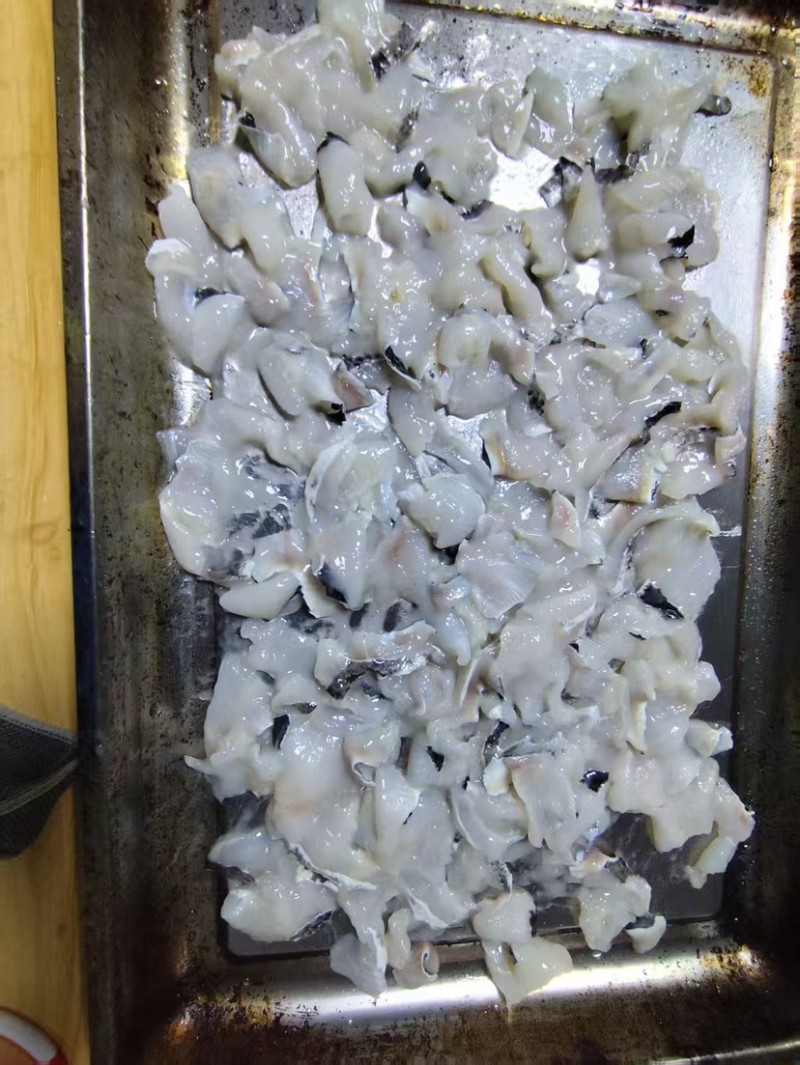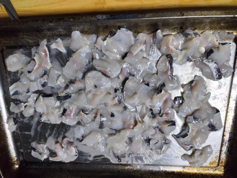 免浆黑鱼片,非鱼尾部分制作,产品出成率75%以上,规格1千克/袋,10袋/箱