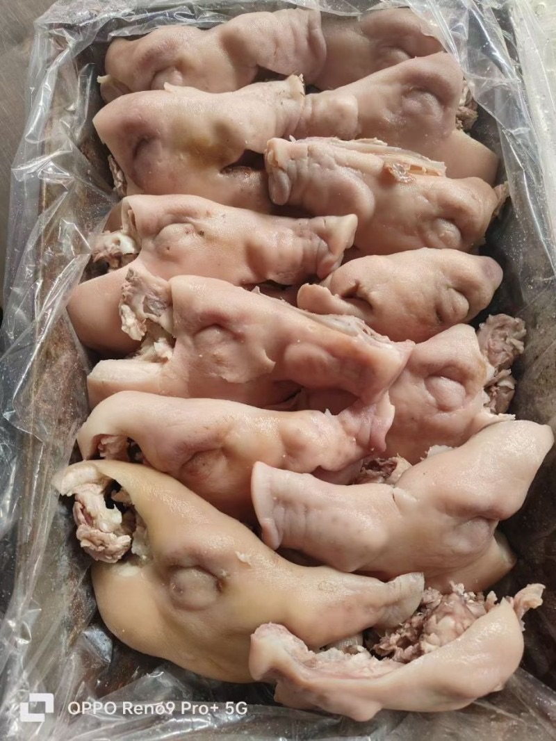 去骨七分熟猪头肉,国产无毛,颜色白净,净重19斤纯干货。本公司长期屠宰分割猪副产品,精肉系列:1234号精肉,两扒,前驳,腱子