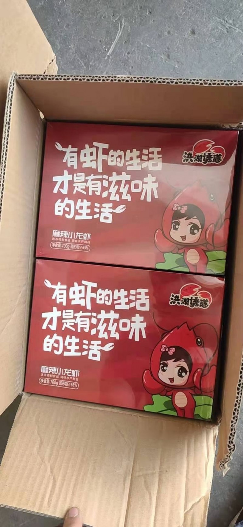 洪湖诱惑麻辣小龙虾,一箱十盒,去箱净重7kg,颜色正,品质好,分量重,货品质量、分量始终如一!!!