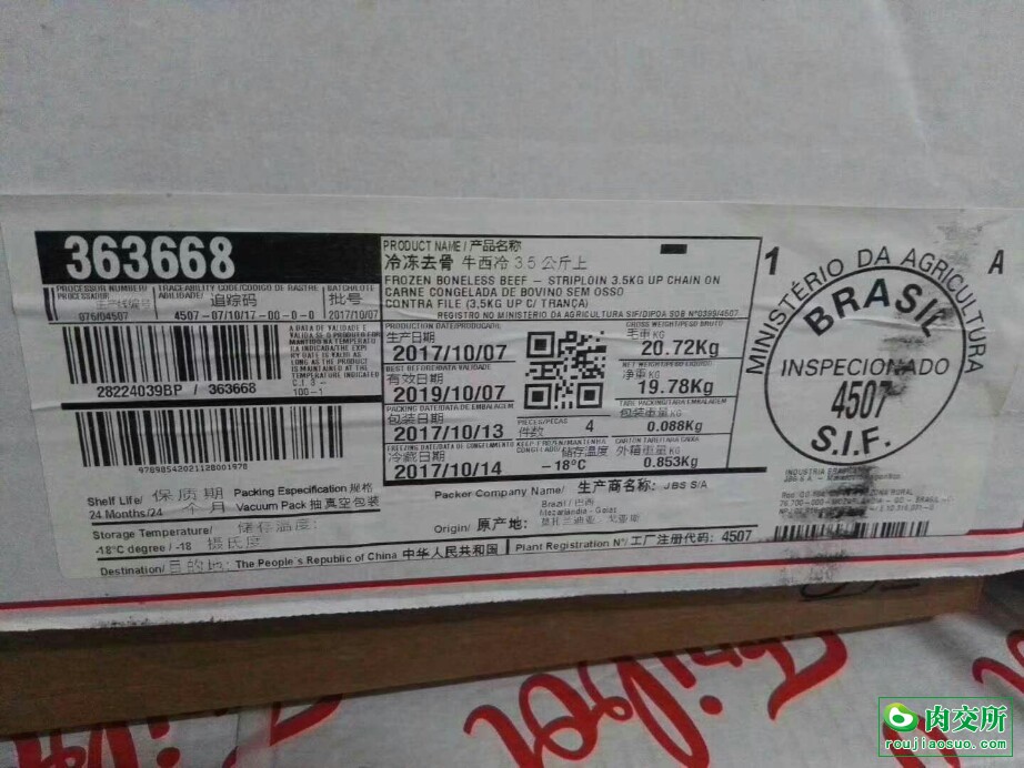 巴西JBS4507/337西冷3.5+.巴西JBS337眼肉心2.5+.现货天津。正关,一手货源。