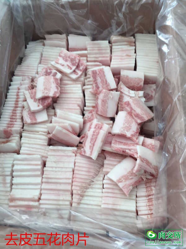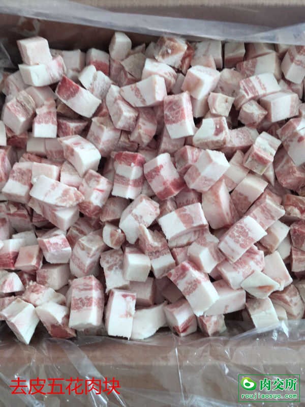 分割猪产品,排骨粒,带皮五花块,去皮五花块,去皮五花片,猪蹄块14块,8块,猪手粒。小排段。