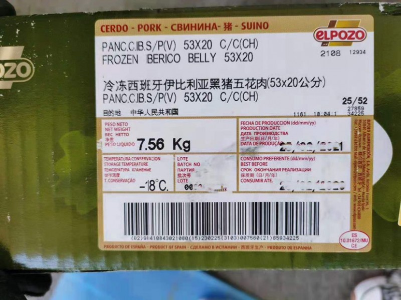 西班牙1672伊比利亚黑猪五花肉53*20,现货