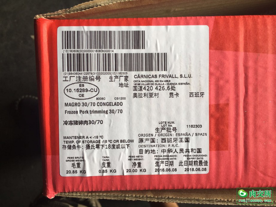 西班牙厂号15289,30:70猪碎肉
