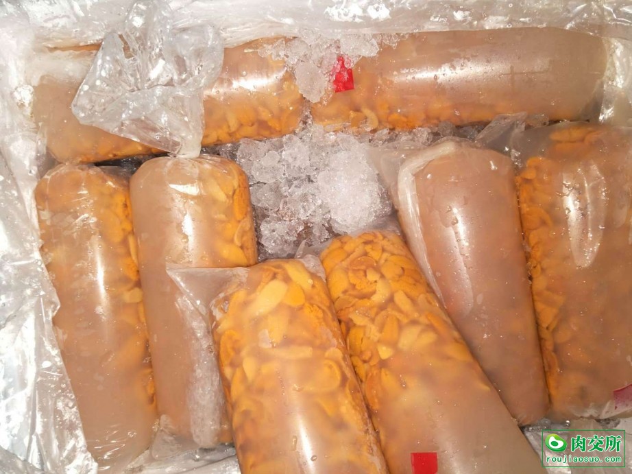 马粪海胆冻板,每日可供货3吨左右。 马粪海胆水袋,每日可供货500kg。
