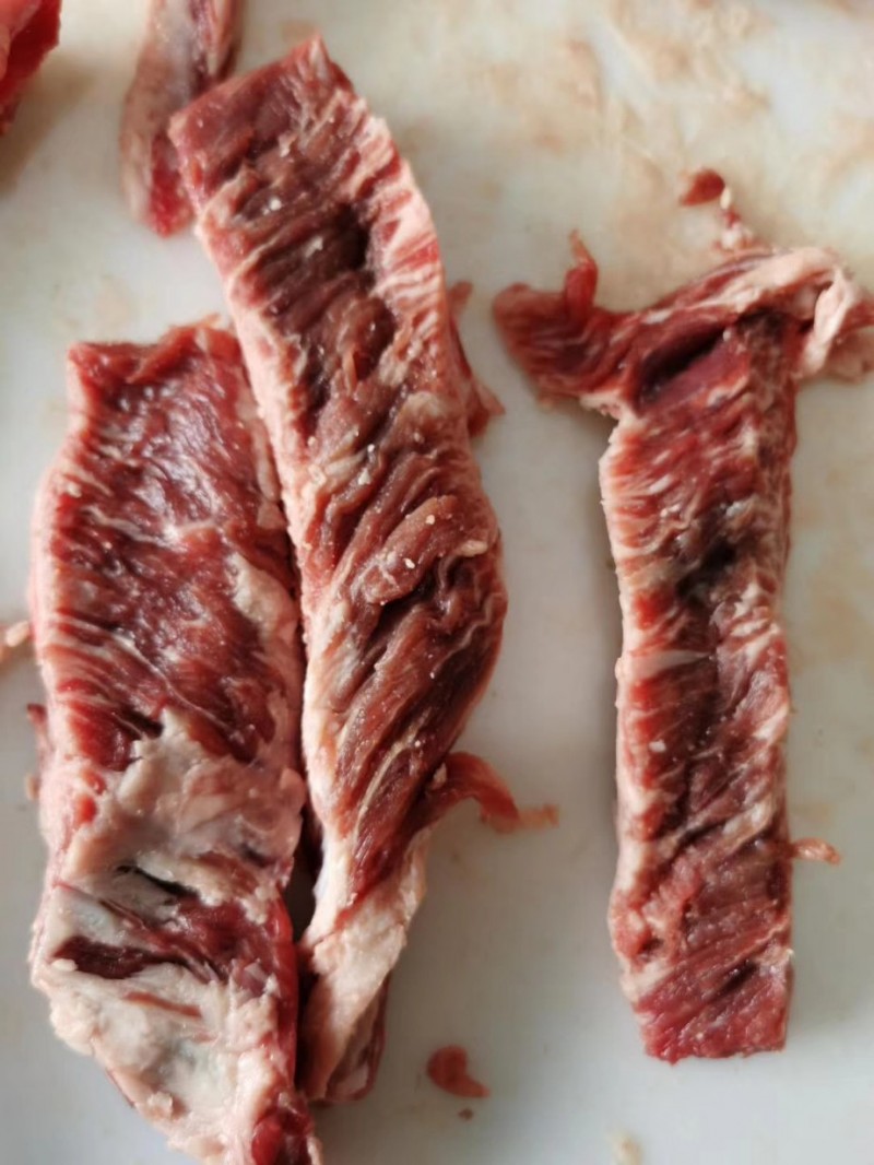 腹肉条,肥瘦相间。适合煎,烤,炖。火锅店自助餐厅的首选。