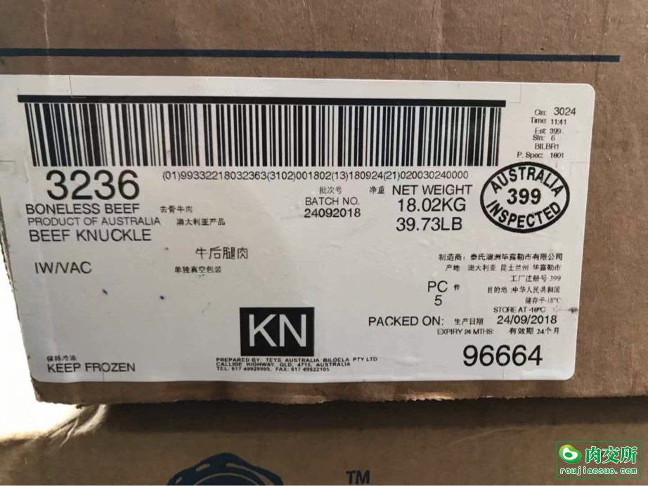 澳洲Teys399厂牛霖,上海翁牌冷藏现货~